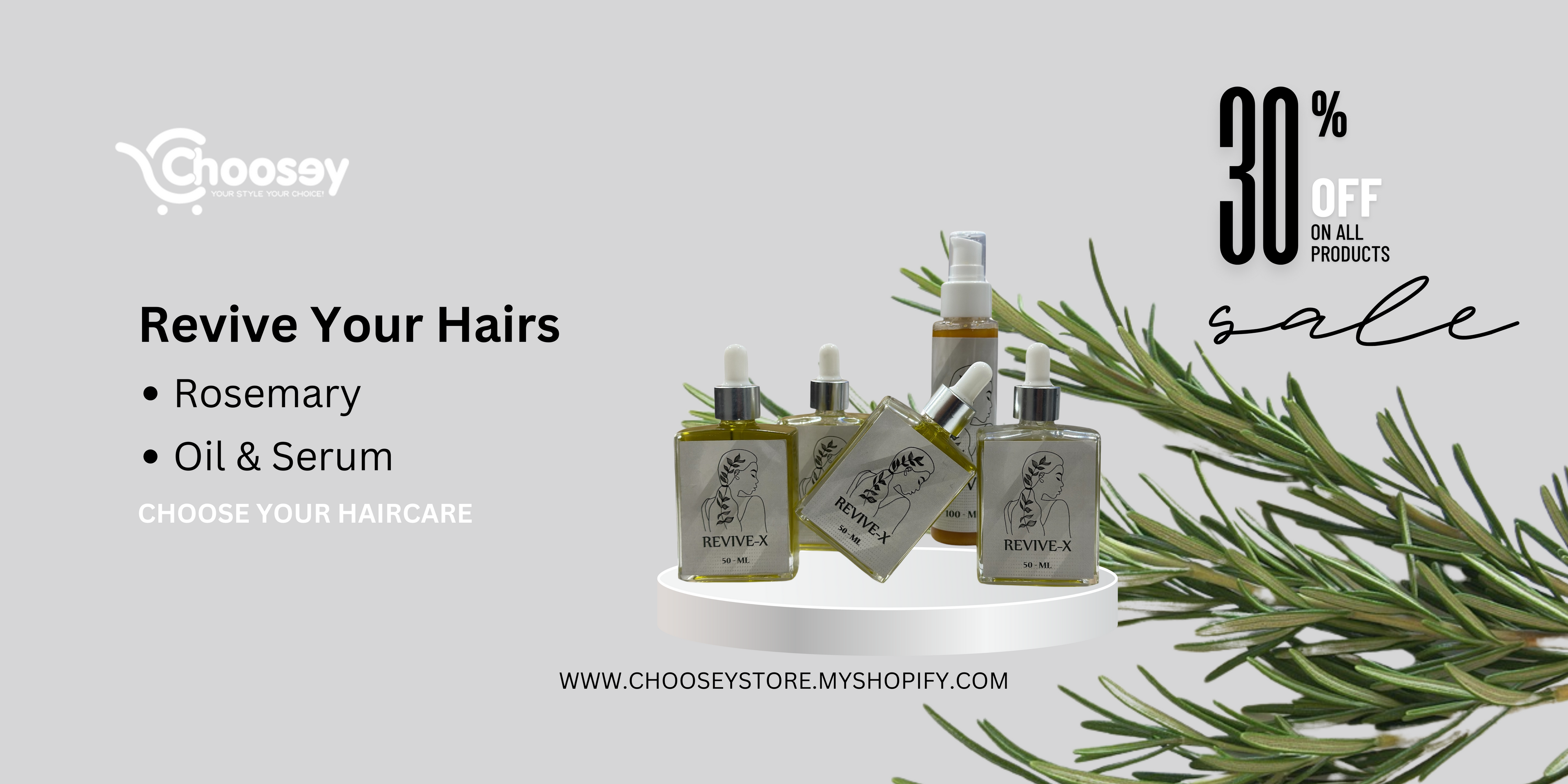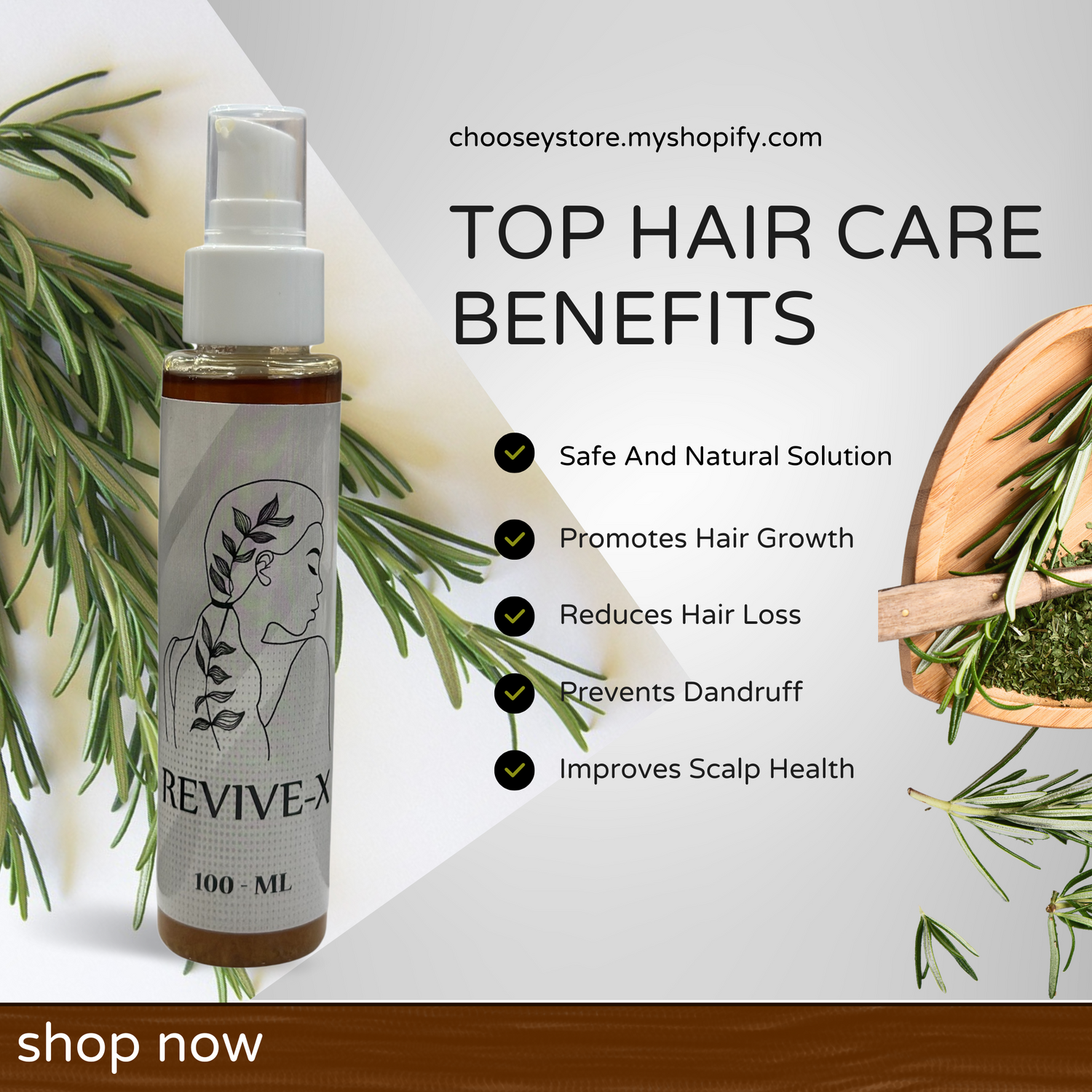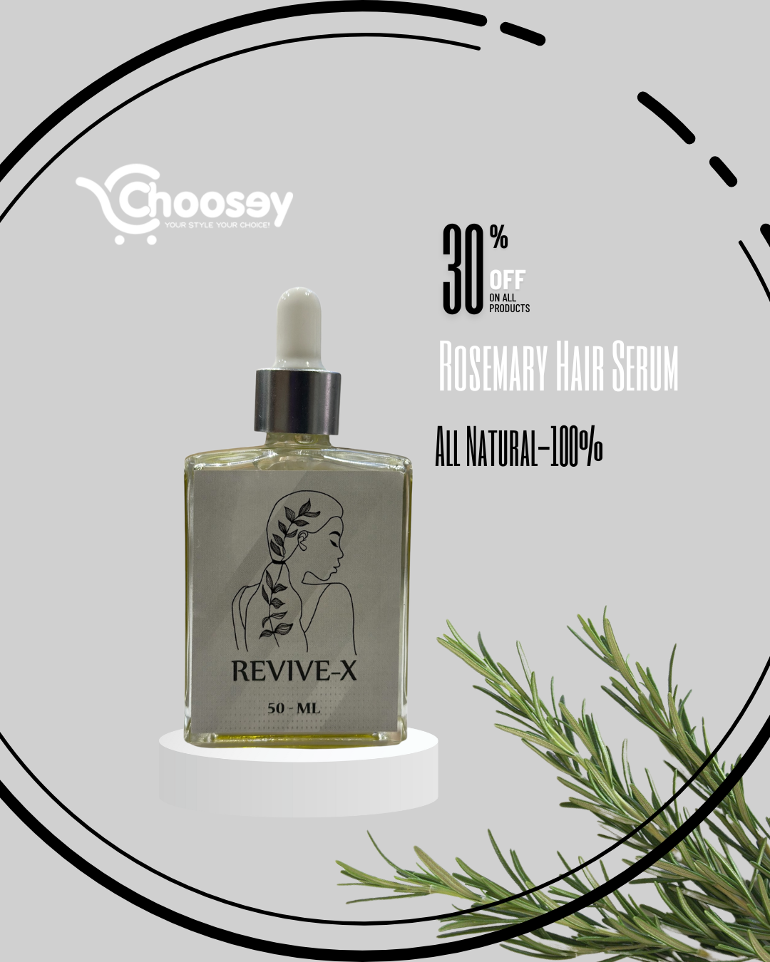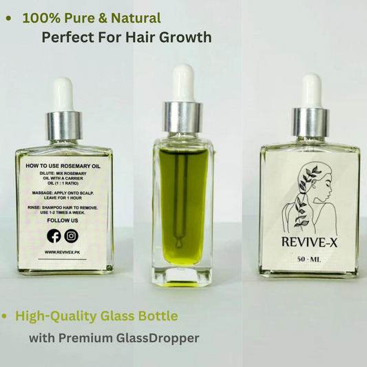 Revive-X Rosemary Hair Growth & Shine Serum (50ML) stimulates growth, reduces hair loss, strengthens, nourishes, and enhances shine with 100% natural ingredients.